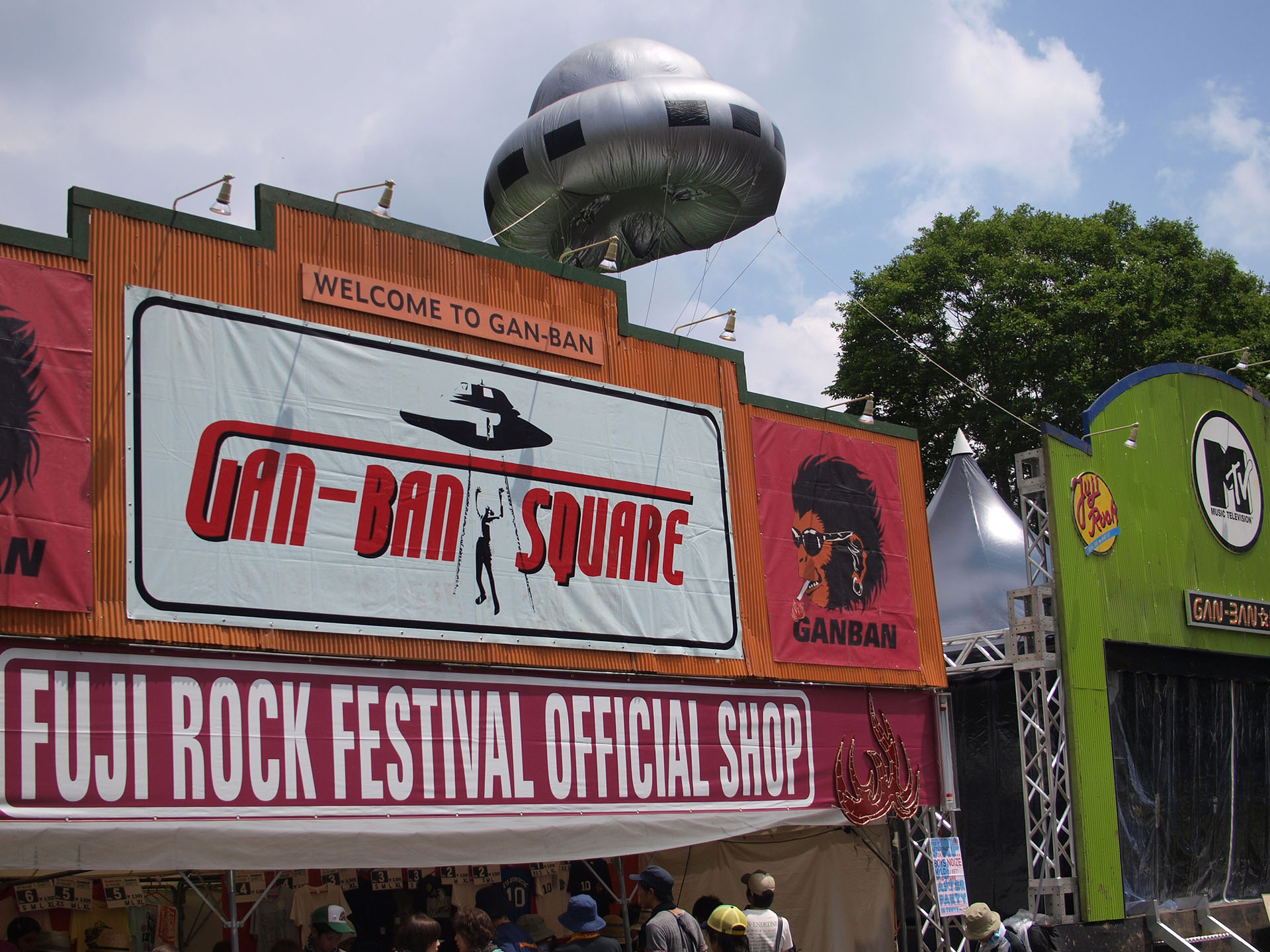 そこに GAN-BAN SQUARE が加わったのですか?いや、岩盤は2001年から出店しているのですが、クラブエリアの枠組みではなく、今でいう苗場食堂のあたりに西麻布の 3.2.8 と一緒にブースを構えていました。その初出店の年、勝手にサウンドシステムを持ち込んで DJ パーティをやったんですね。そうしたら僕らのブースの真向かいに、フジロックと親和性の高い RISING SUN ROCK FESTIVAL がブースを出して、先ほど話に出た BLANKEY JET CITY や THEE MICHELLE GUN ELEPHANT のマネージメントの方々がそこを運営していた。仲がいいので開催前にはお互いの内容が筒抜けで、彼らは上階に DJ ブースを設けた 2 階建てのブースを手作りして、僕らのブースと対面で音の出し合いになっちゃったんです